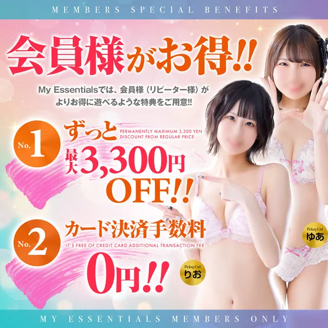 店名My Essentialsは「私のかけがえのない存在」という意味です。その名のとおり、当店はお客さまにとって『かけがえのない』、可愛い女の子との素晴らしい出会いをお届けするお店であることをコンセプトとしています。